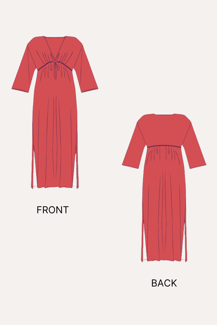 2. On the right side of the fabric, where the garment will be worn, create a row of basting stitches along the center front line.