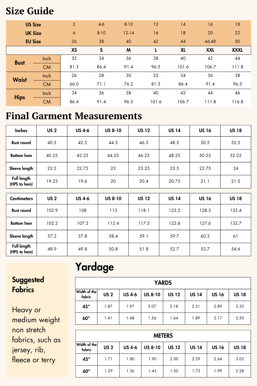 This pattern works best with light woven fabrics like cotton, lawn, or rayon to let the shirring and sleeves shine.
