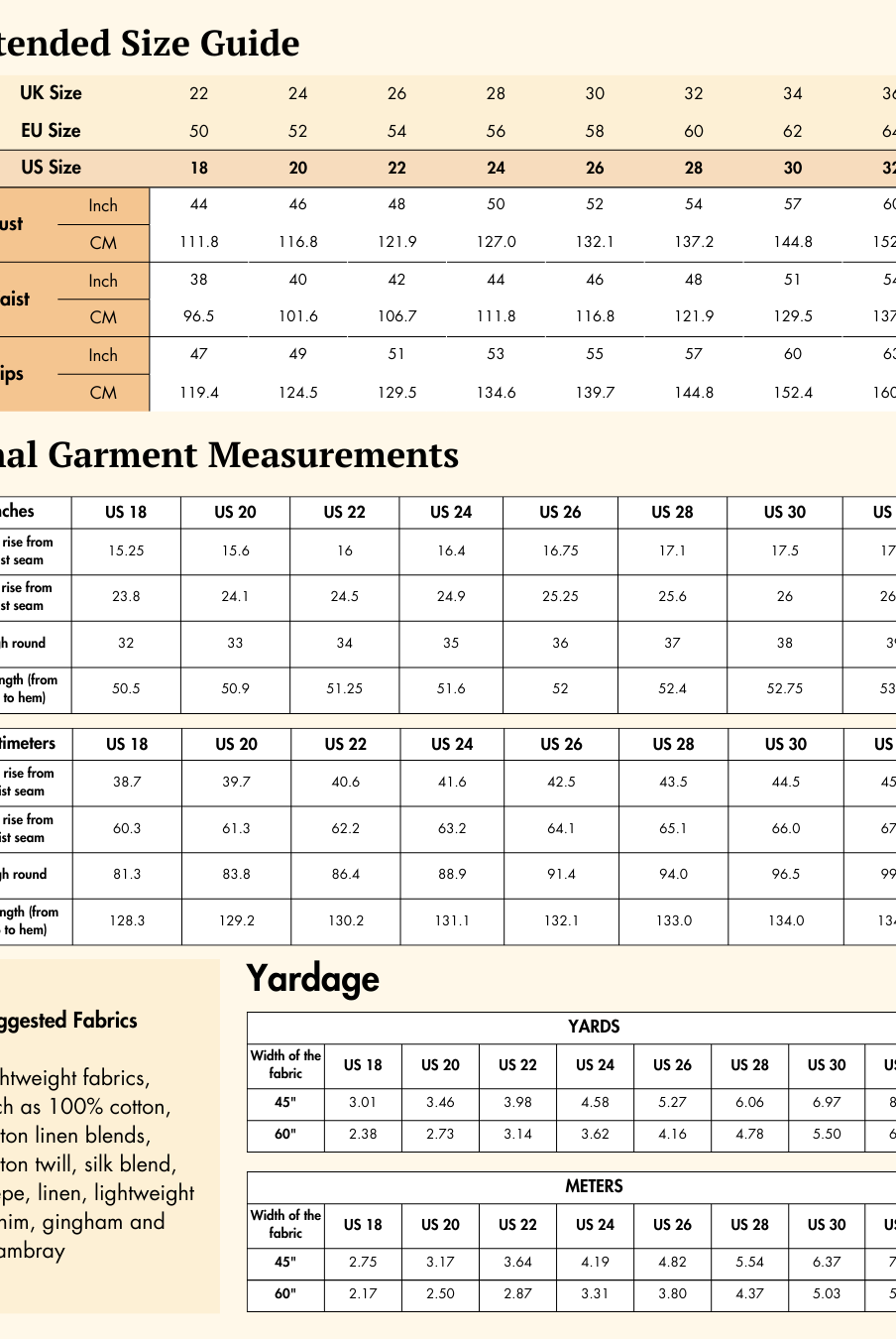 - If using fabric with nap or prints, purchase additional length.