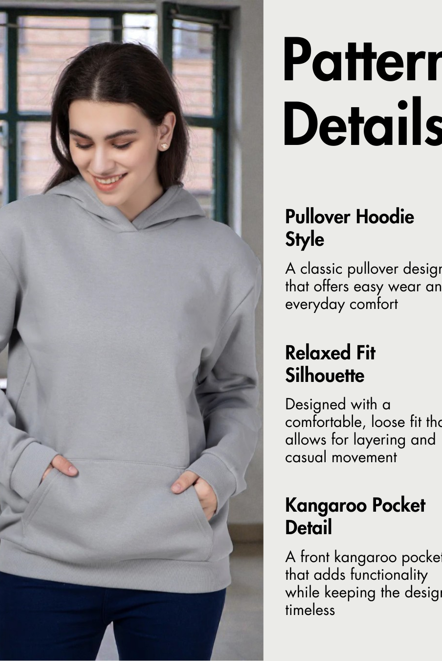 Modern silhouette: Cropped, round-neck, drop shoulders, and practical pockets.
