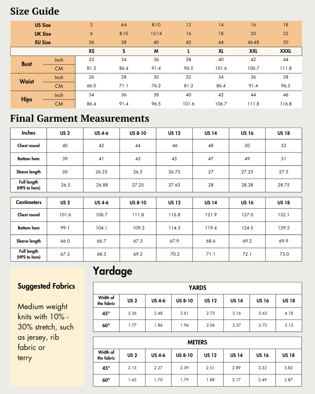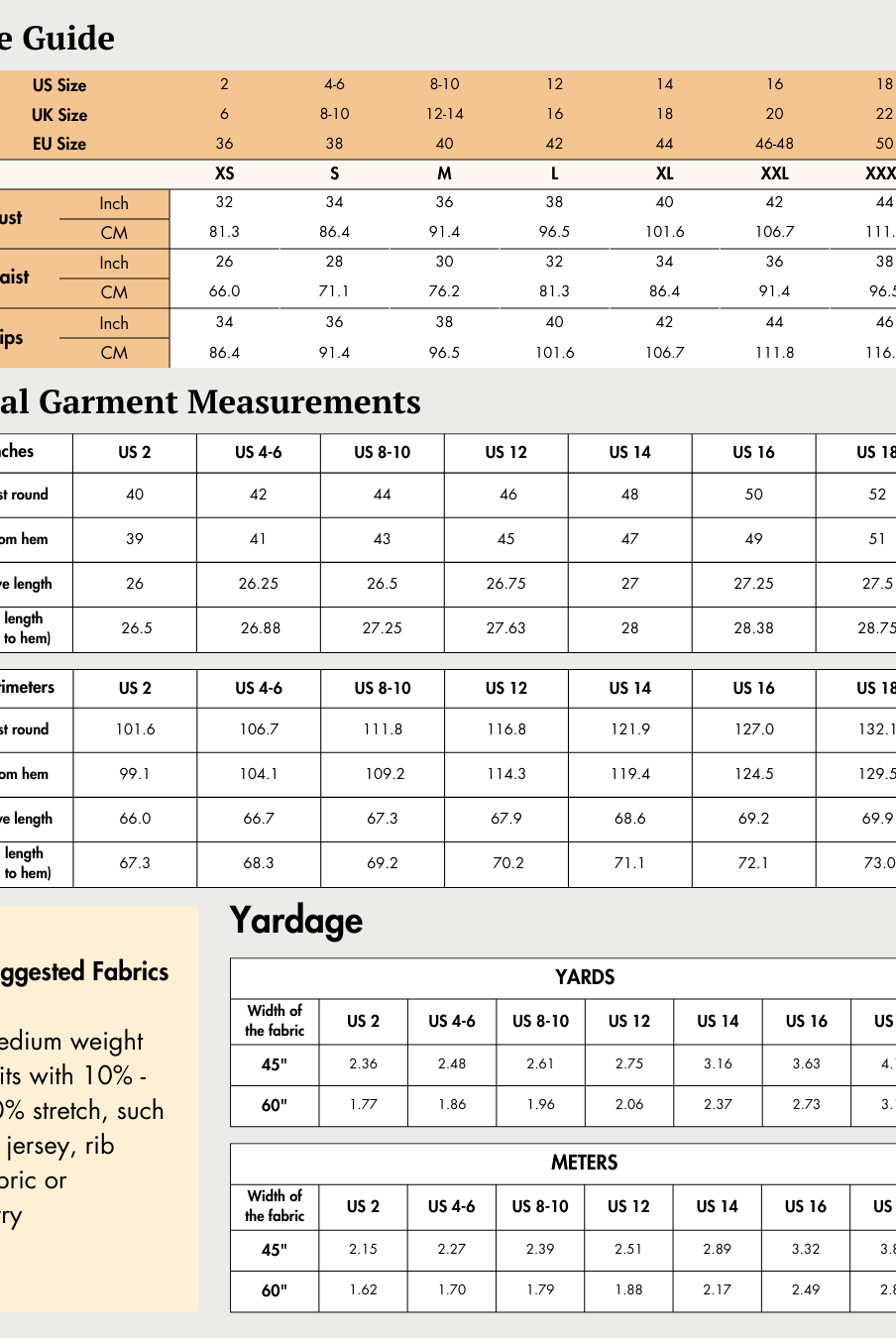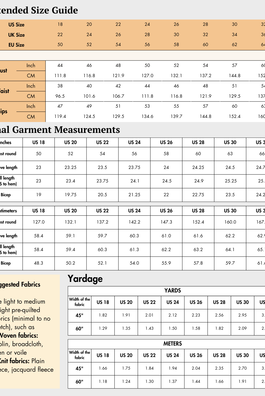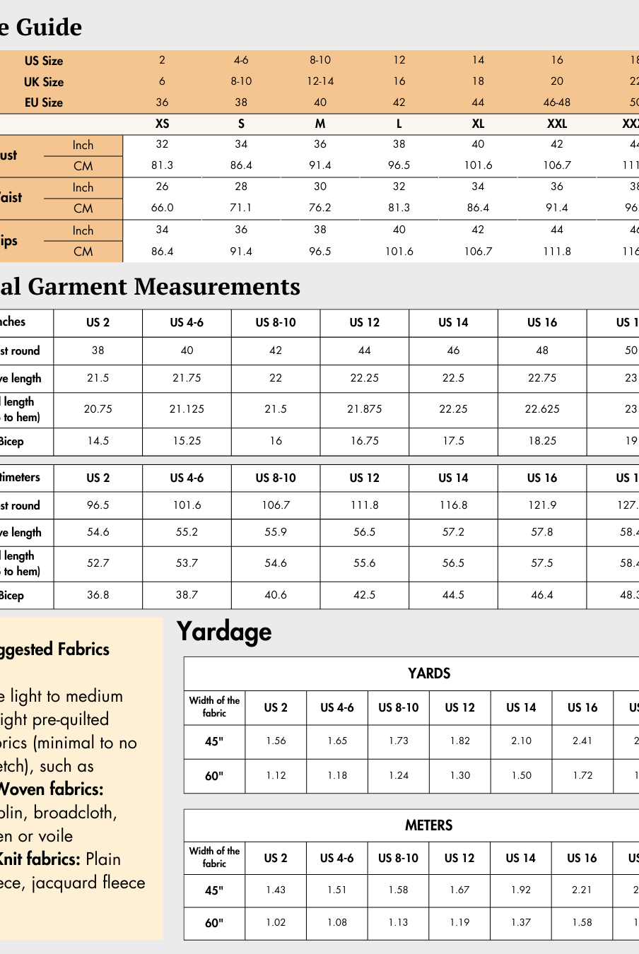 The Romy Jacket pattern is available for sizes US 02 - US 32 | UK 06 - UK 36 | EU 36 - EU 64. Check the Romy Jacket Size Chart and measure yourself to select the correct size (see the garment and body measurement tables).