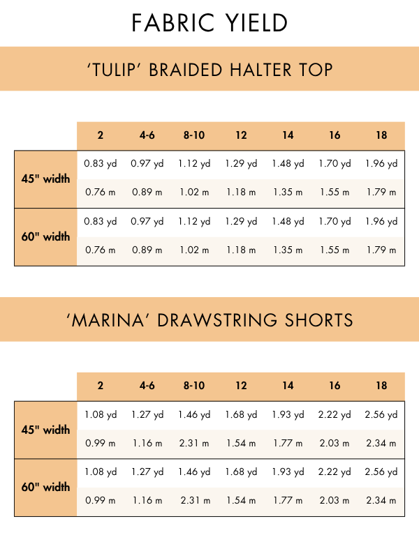 If your measurements fall between sizes, consider the fit you prefer (looser or tighter) and the type of fabric you'll use, as some fabrics have more give. All patterns include finished garment measurements which can be helpful to know how much ease or extra room is built into the design.