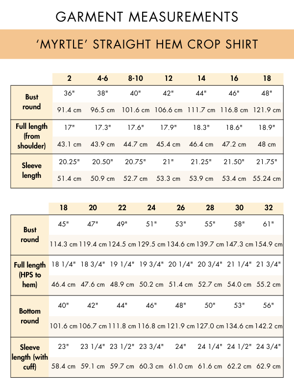 What sizes do Winslet’s crop top sewing patterns come in?