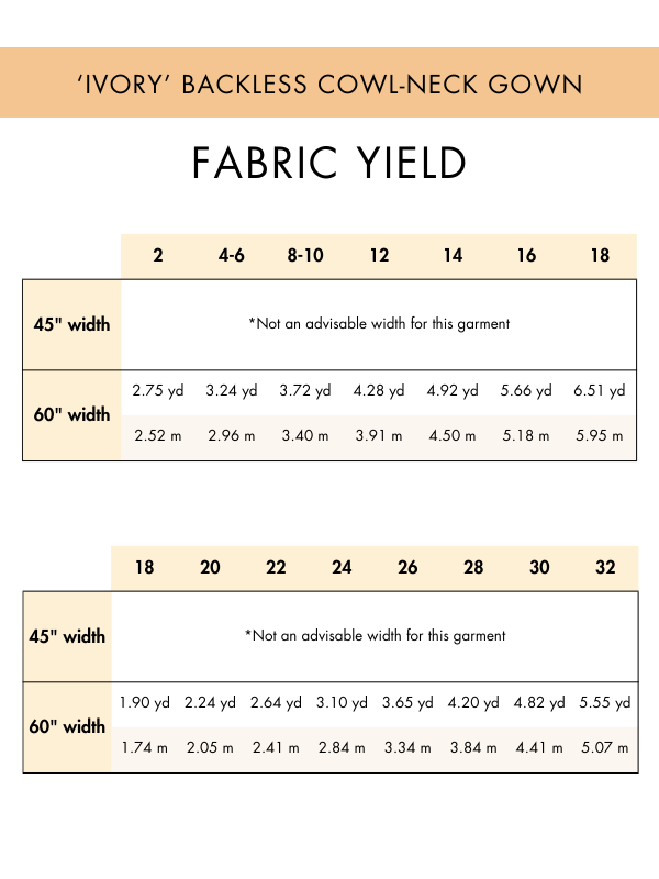 • Yardage requirements (in Sewing Guide)