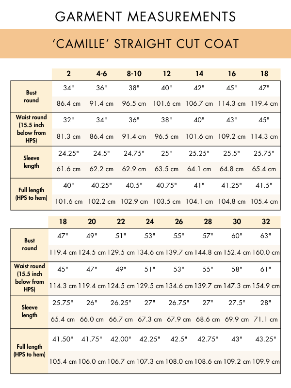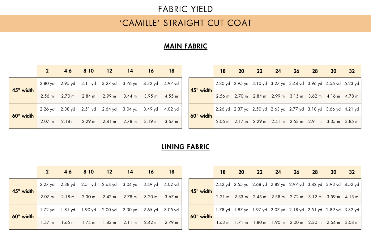 The Camille Straight Cut Coat is an advanced-level project due to tailored construction elements such as lapel assembly, structured seams, lining techniques, and precise finishing. Careful pressing and step-by-step construction are essential for a professional result.