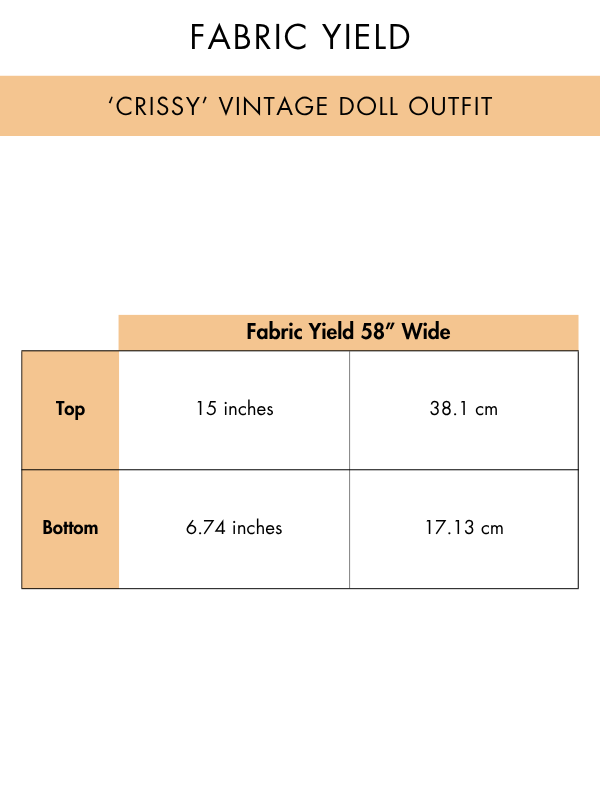 The Crissy Vintage Doll Outfit is an easy and enjoyable project designed for quick sewing sessions while still allowing clean finishing and neat garment construction on a smaller scale. The set includes simple garment shapes that are beginner-friendly and ideal for practicing precision sewing and small seam handling.