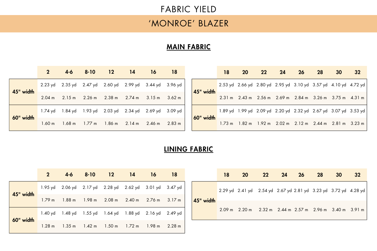 • Yardage requirements (in Sewing Guide)