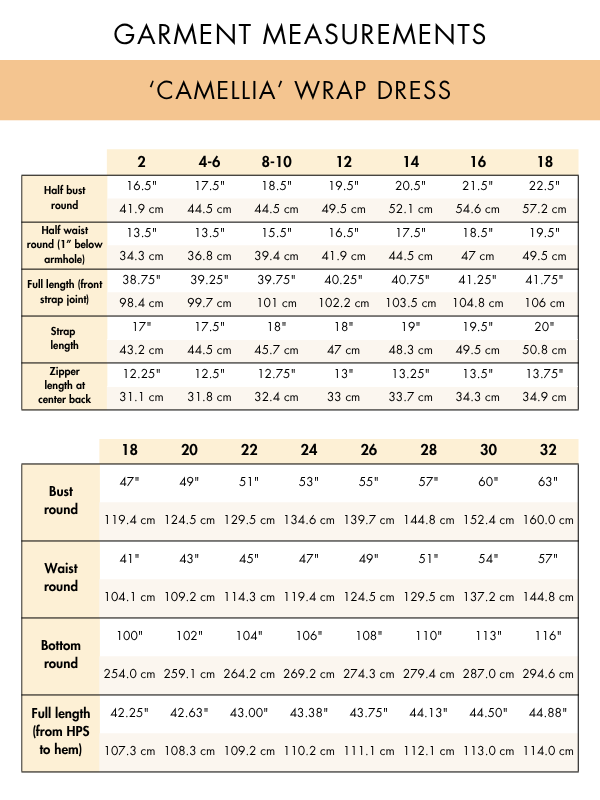 If your measurements fall between sizes, consider the fit you prefer (looser or tighter) and the type of fabric you'll use, as some fabrics have more give. All patterns include finished garment measurements which can be helpful to know how much ease or extra room is built into the design.