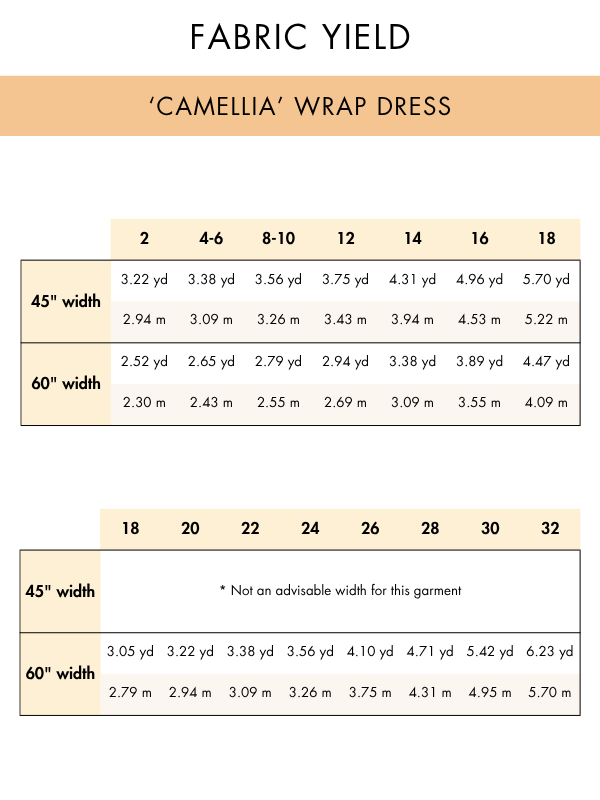 The Camellia Wrap Dress is an easy-level sewing project with straightforward construction and beginner-friendly techniques. The wrap design allows flexibility in fit, making it approachable for sewists who are comfortable with basic garment assembly and finishing.