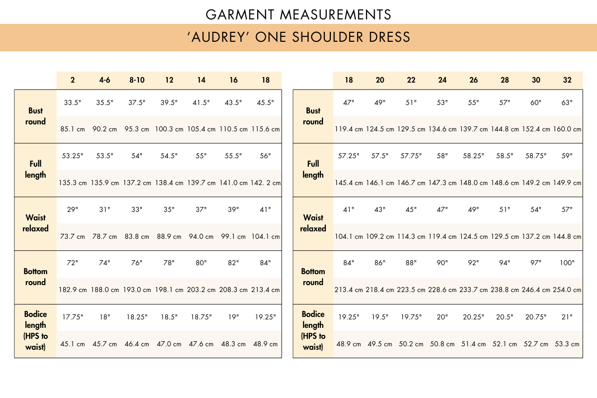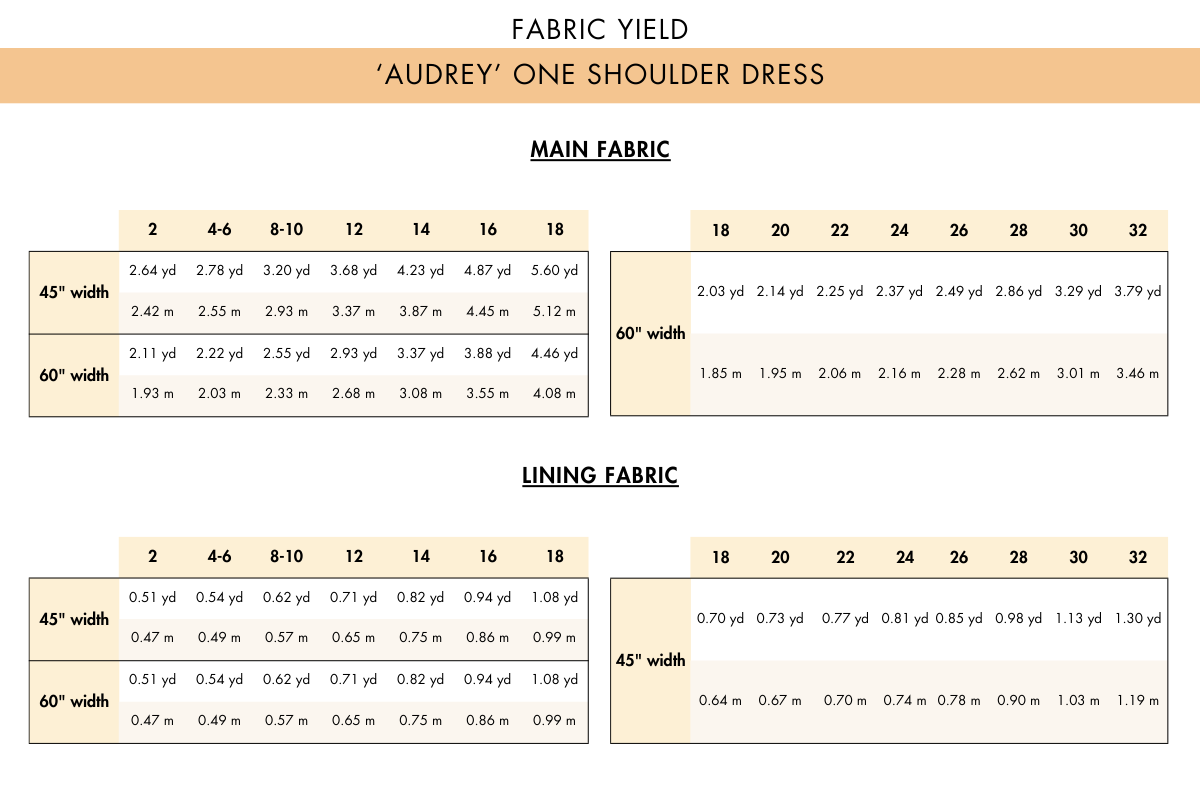 The One Shoulder Dress Sewing Pattern 'Audrey' includes a variety of sizes to accommodate different body shapes. Please check the size chart included with the pattern to find your best fit.