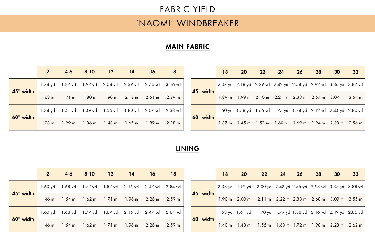 Our sewing patterns are initially designed based on a basic block drafted for a woman with the following measurements: height 5'6", bust 34", and waist 28", corresponding to size S on our size chart. From there, the patterns are graded both up and down to accommodate various sizes.