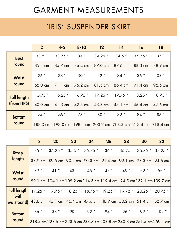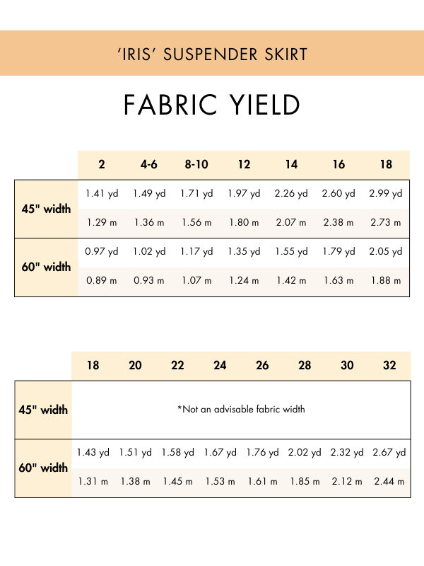 The Iris Suspender Skirt is versatile across multiple seasons and works well in a variety of fabrics depending on styling. Lightweight fabrics make it suitable for warmer months, while medium-weight fabrics can transition easily into cooler weather when layered with tops or tights.