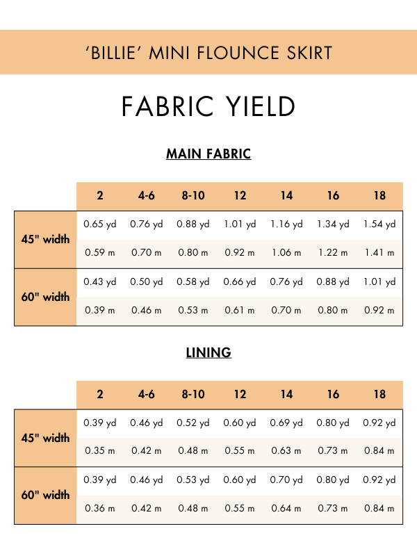 The Billie Mini Flounce Skirt works best in lightweight woven fabrics, making it ideal for warm-weather sewing and styling. Its short length and airy silhouette make it especially comfortable in warmer climates.