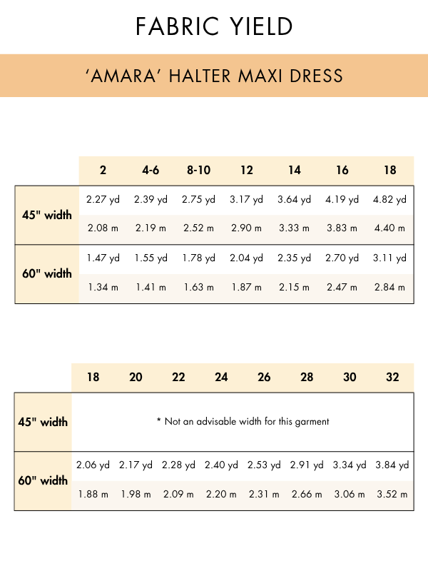 • Yardage requirements (in Sewing Guide)