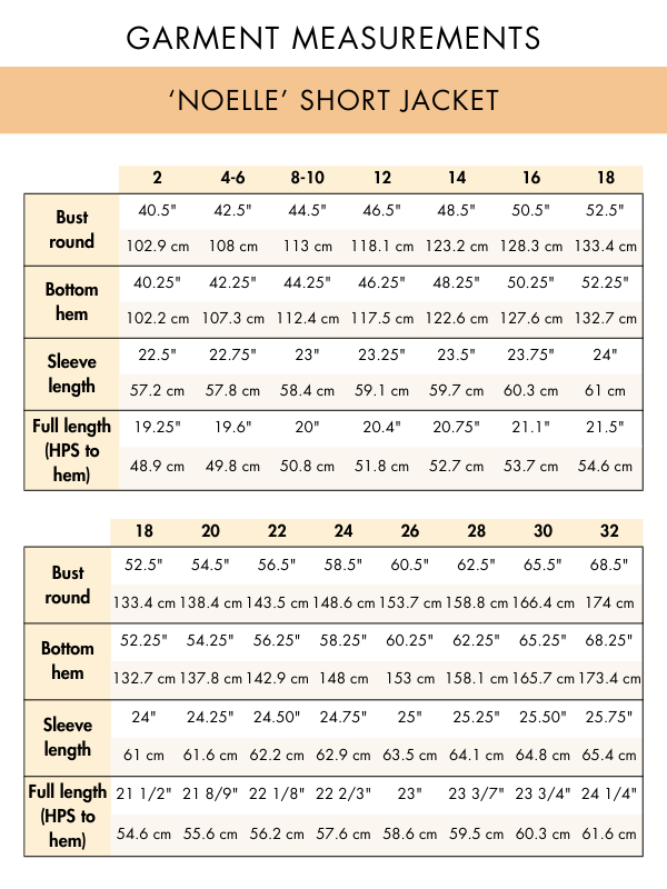 If your measurements fall between sizes, consider the fit you prefer (looser or tighter) and the type of fabric you'll use, as some fabrics have more give. All patterns include finished garment measurements which can be helpful to know how much ease or extra room is built into the design.