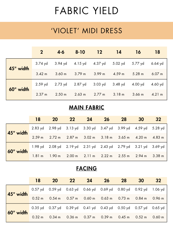 If your bust/waist/hip measurements align with different sizes, you would want to choose the size based on the apparel category or the garment fit and make adjustments to blend sizes. For example, prefer the size based on your bust measurement for making a top, and waist measurement for a relaxed dress cinched at the waist.