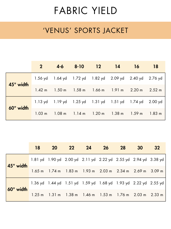 • Yardage requirements (in Sewing Guide)